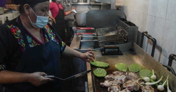 NUEVA YORK — El aroma de chuletas de cerdo, jalapeños y cactus a la brasa llena la cocina de este restaurante del sur del Bronx. Detrás de la puerta, en un cartel rojo, se lee: “no deportaciones”.