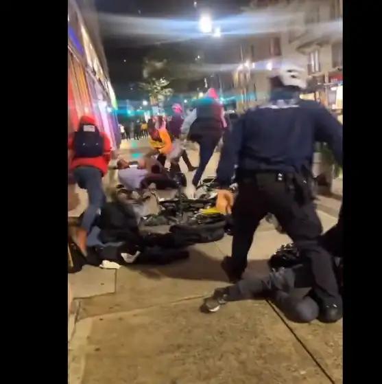 Videos publicados en redes sociales mostraban a personas encapuchadas y con el rostro cubierto saliendo a toda prisa de Lululemon y a policías deteniendo y derribando a varios de ellos sobre la acera, informó el diario Philadelphia Inquirer.