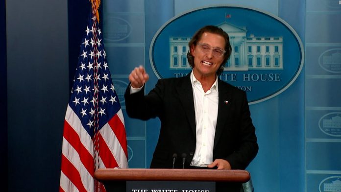 “Tenemos que mirarnos en el espejo con sobriedad, humildad y honestidad y cambiarnos de marca en función de lo que realmente valoramos. Lo que realmente valoramos. Tenemos que tener un valor real y honrar nuestras obligaciones inmortales en lugar de nuestras afiliaciones partidarias”, dijo McConaughey.