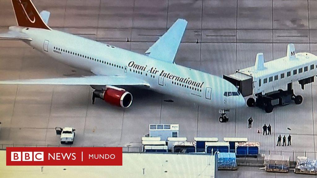 Fuente de la imagen, Getty Images Pie de foto, Avión en el que fueron transportados los más de 200 presos políticos liberados por el gobierno de Nicaragua.