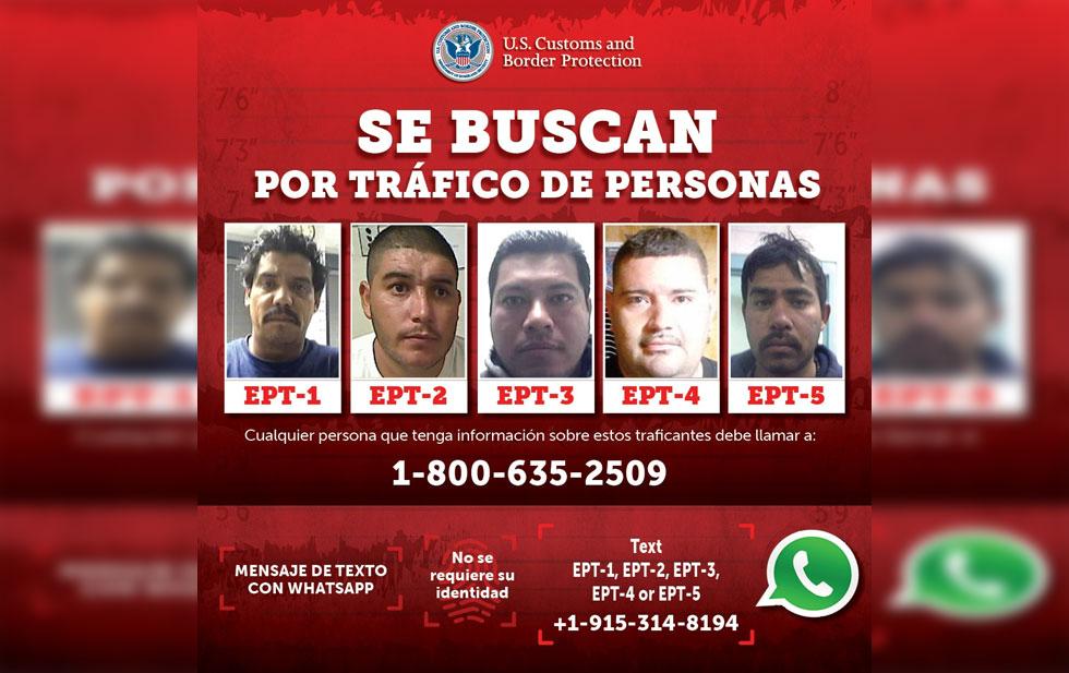 “Las organizaciones criminales transnacionales explotan a los migrantes y los tratan como una mercancía mientras los traficantes continúan poniendo sus vidas en peligro”, dijo el jefe interino del agente de patrulla Peter Jáquez del sector de El Paso. “A través de esta iniciativa, los miembros de la comunidad en ambos lados de la frontera tendrán la oportunidad de brindarnos información para capturar a estos peligrosos delincuentes de contrabando que explotan a los migrantes vulnerables con fines de lucro”.