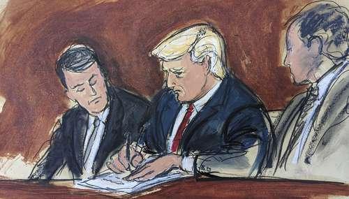Lo único que hizo Trump en la audiencia fue firmar un acuerdo en el que se comprometió a no tener contacto con testigos del caso.