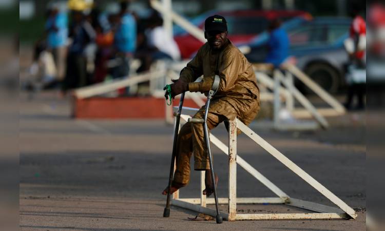 Principal: víctima de “poliovirus salvaje” se sienta en el poste de una portería durante un partido de parafutbol en Abuja, Nigeria, el 22 de agosto de 2020.