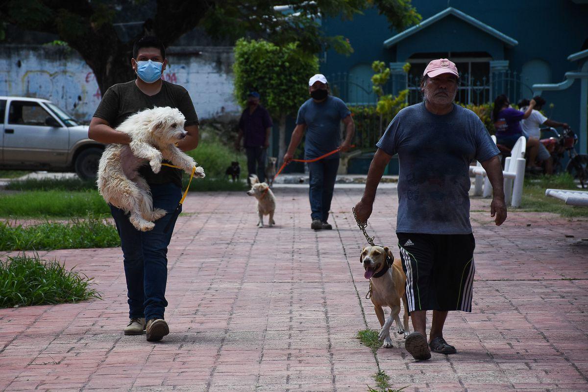 Personas llevan a sus perros a la vacunación de la Jornada Nacional Antirrábica Canina, en Campeche (Campeche), en 2021. Cuartoscuro