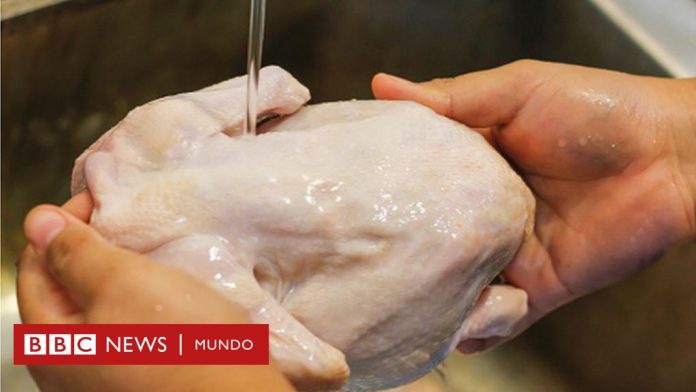 La Agencia de Normas Alimentarias de Reino Unido (FSA por sus siglas en inglés) alertó ya hace tiempo que lavar el pollo antes de cocinarlo aumenta el riesgo de propagación de la bacteria campylobacter en las manos, las superficies de trabajo, la ropa y utensilios de cocina por la salpicadura de gotas de agua.