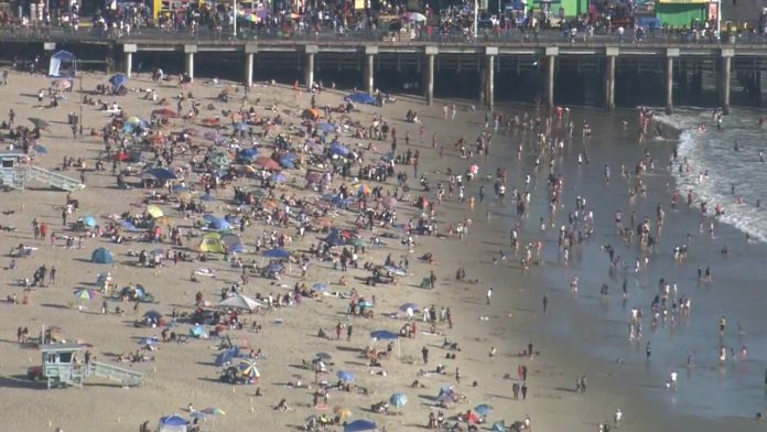 Playas de Los Ángeles abarrotadas mientras alertan de “una fatalidad inminente” en EEUU