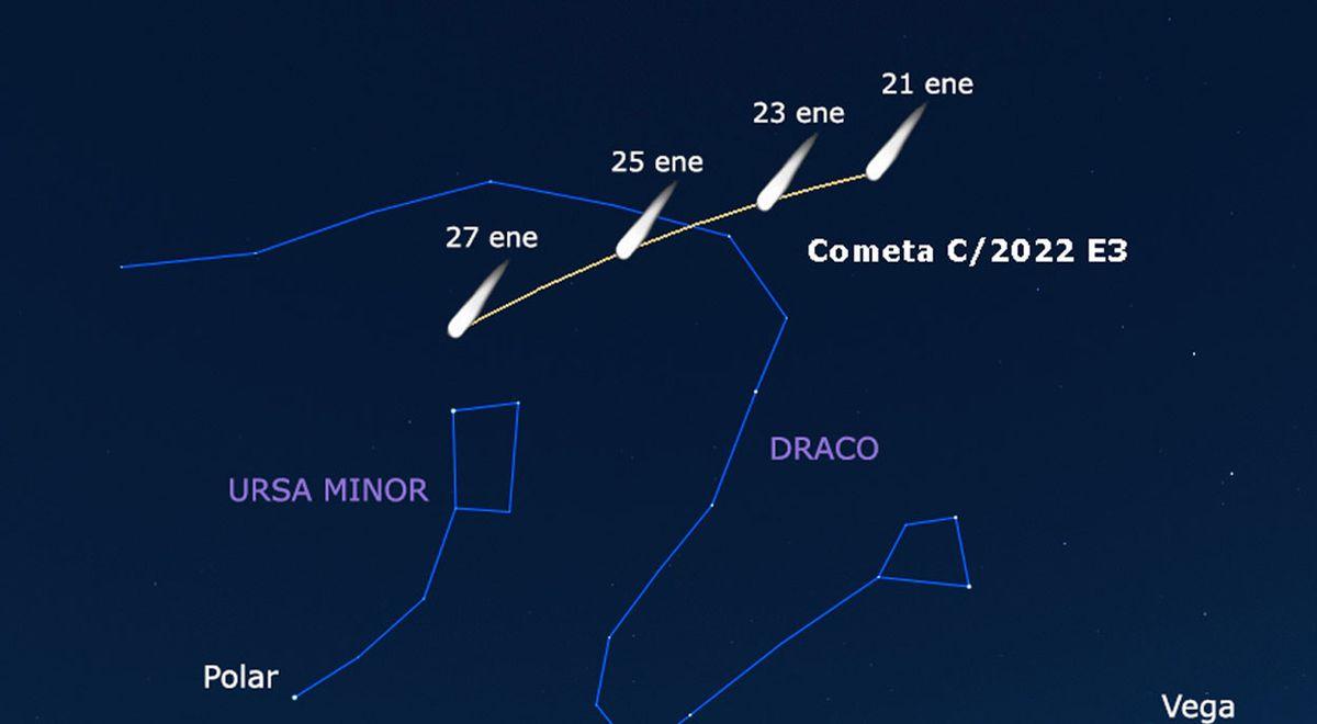 En enero (período matutino): mirar hacia el norte, a la izquierda de la constelación Hércules. En los siguientes días, atravesará las constelaciones Draco y la Osa Menor.
