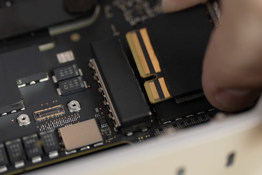 Parece que esa segunda ranura es para ayudar a los técnicos autorizados a realizar potenciales reparaciones. El software de los Mac impide que usuarios normales conecten una unidad SSD compatible y la puedan usar en estos equipos, por lo que parece posible que una actualización software hiciera esas ampliaciones posibles para todos los usuarios.