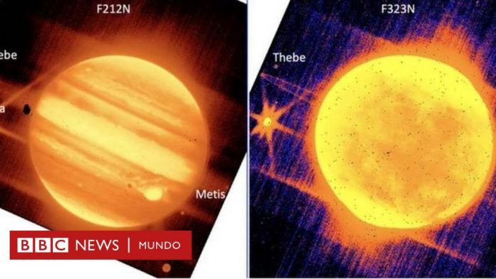 Fuente de la imagen, NASA Pie de foto, Las fotos tomadas por el telescopio James Webb de Júpiter.