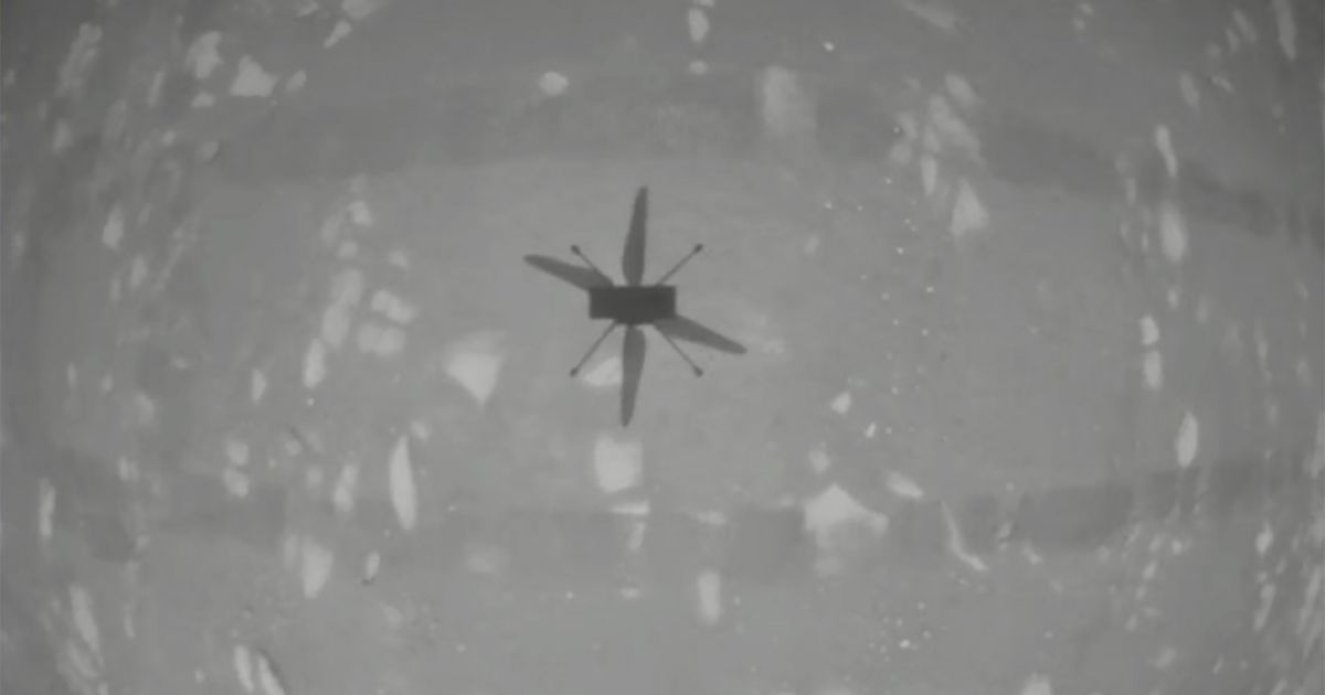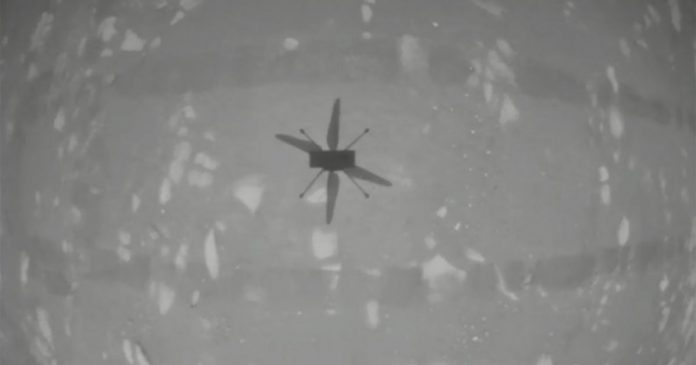 Ingenuity, el helicóptero experimental de la NASA en Marte, despegó este lunes de la polvorienta superficie roja de Marte para completar el primer vuelo controlado y motorizado sobre otro planeta.