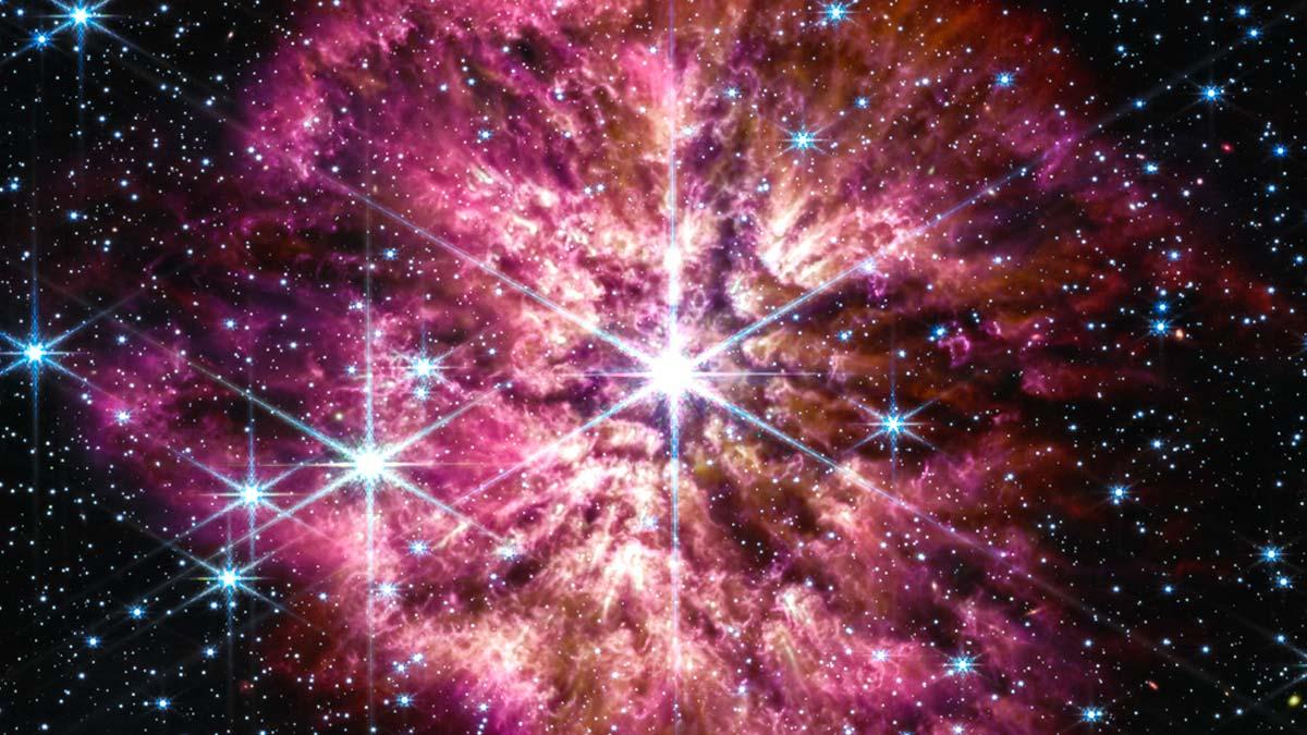 La rara vista de una estrella Wolf-Rayet, a 15 mil años luz de distancia en la constelación de Sagitario, fue una de las primeras observaciones realizadas por el telescopio espacial James Webb de la NASA en junio de 2022. Se trata de una de las estrellas más luminosas, masivas y detectables brevemente que se conocen.