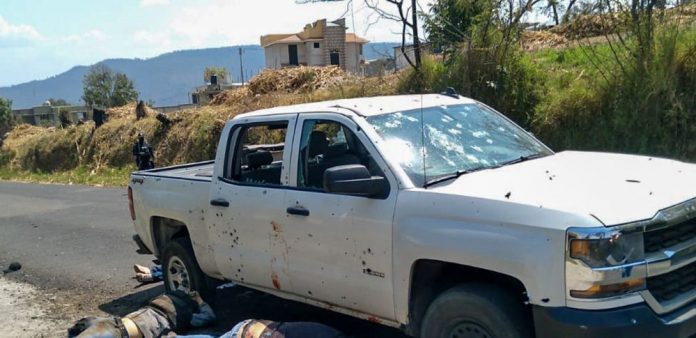 Uno de los vehículos baleados en la zona de Llano Grande en Coatepec Harinas. CUARTOSCURO