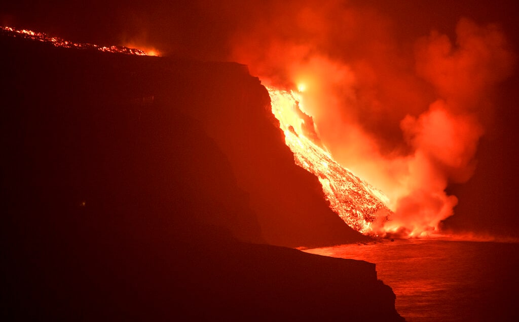 La lava del volcán Cumbre Vieja, en isla La Palma, llegó al mar luego de varios días de erupción constante, la cual ha generado por ahora un momento visual con emociones adversas tomando en cuenta que el flujo ardiente ha consumido hectáreas, edificios y masivas evacuaciones en Islas Canarias, en España.