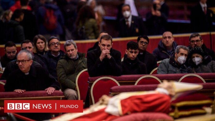 Fuente de la imagen, Getty Images Pie de foto, Miles de personas se acercaron a la Plaza de San Pedro para despedir a Benedicto XVI.