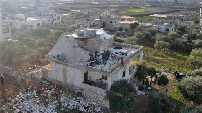 Pero varios testigos y rescatistas le dijeron a CNN que los bombardeos y las explosiones precedieron a un ataque aéreo de las fuerzas estadounidenses poco después de la medianoche y tuvieron como objetivo una casa en la zona fronteriza sirio-turca de Atmeh, en el enclave rebelde de Idlib.