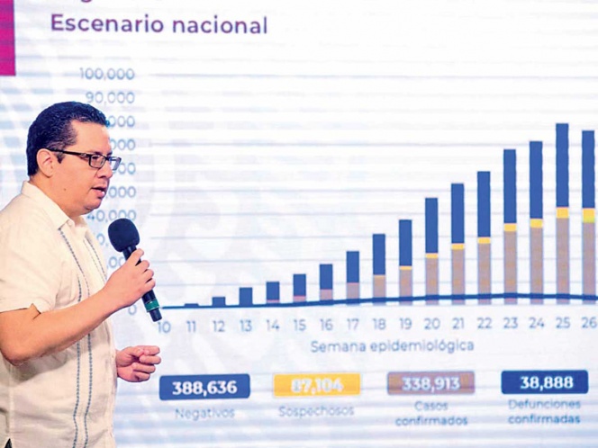 José Luis Alomía, director general de Epidemiología de la Ssa, reportó 338 mil 913 contagios en total y 38 mil 888 defunciones, con las 578 nuevas que hubo en un día.