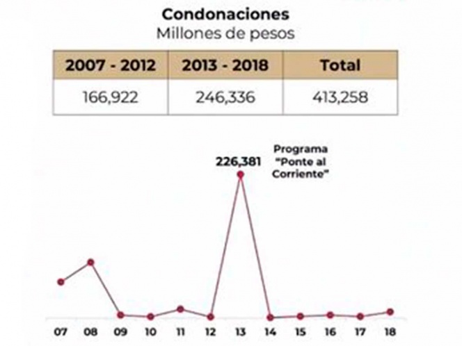 De acuerdo con el SAT, en los dos sexenios pasados se condonaron 413 mil 258 millones de pesos, la mayoría a la iniciativa privada. Imagen: Captura de video