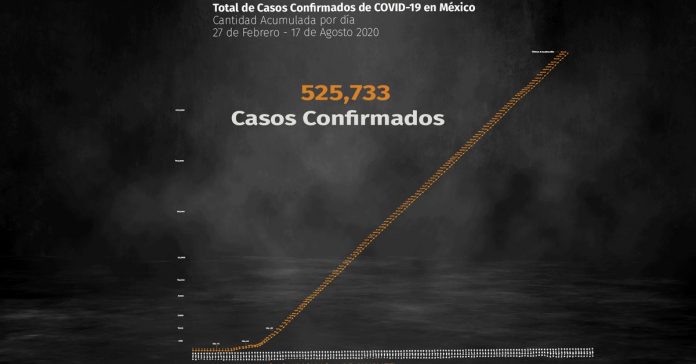 La pandemia de coronavirus continúa su paso por México. De acuerdo con datos proporcionados por la Secretaría de Salud (SSa), hasta este lunes 17 de agosto, suman 525,733 casos positivos acumulados y 57,023 muertes por COVID-19 en el país.