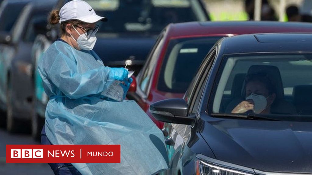 Fuente de la imagen, Getty Images Pie de foto, En la ciudad de Miami, EE.UU. las filas para las pruebas de Covid duran hasta 5 horas