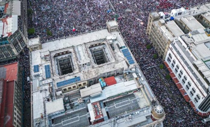 “¡Gracias, pueblo!”, expresó en un breve mensaje para acompañar el video, que incluye tomas panorámicas de la plaza, de su salida de Palacio Nacional acompañado de su esposa Beatriz Gutiérrez, e incluso de los seis aspirantes a sucederlo en el cargo, en primera fila detrás de las vallas.