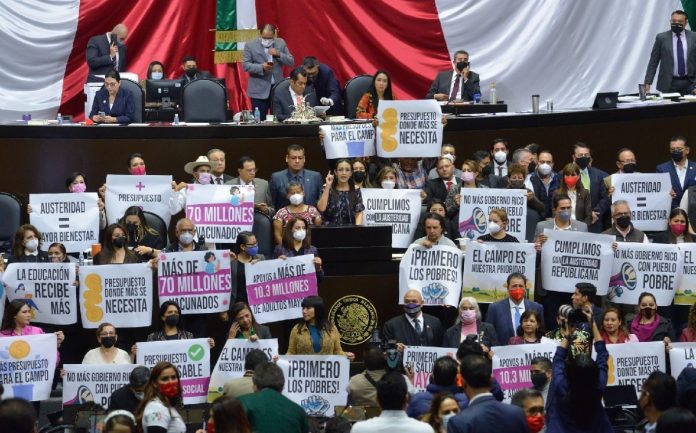 Con pancartas, arengas y reclamos mutuos, las bancadas de Morena y del PAN mantuvieron su confrontación a lo largo de la sesión para discutir en lo particular el Presupuesto 2022.