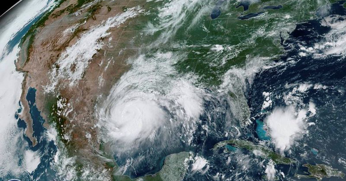 Imagen satelital que muestra al huracán Hanna en el Golfo de México acercándose a la costa de Texas, Estados Unidos. 25 de julio, 2020. NOAA/Handout via REUTERS