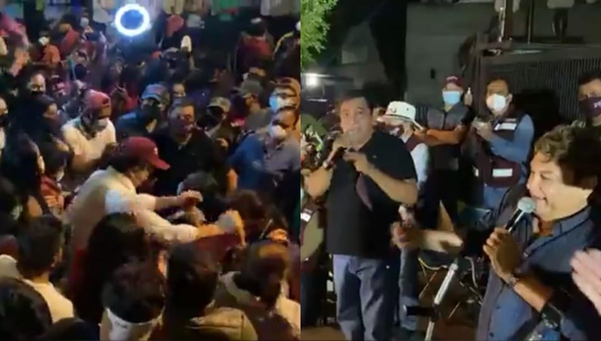 Afuera de las instalaciones del Instituto Nacional Electoral (INE), Félix Salgado Macedonio, Raúl Morón Orozco, y el líder nacional de Morena, Mario Delgado, hicieron una noche bohemia en su plantón, incluso se aventaron un “palomazo” con Johnny Ayvar, vocalista de Los Yonic’s.