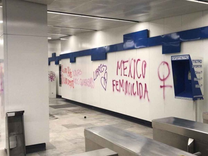 Un grupo de feministas realizó destrozos en las instalaciones de la estación Revolución de la Línea 2 del Sistema de Transporte Colectivo (STC).