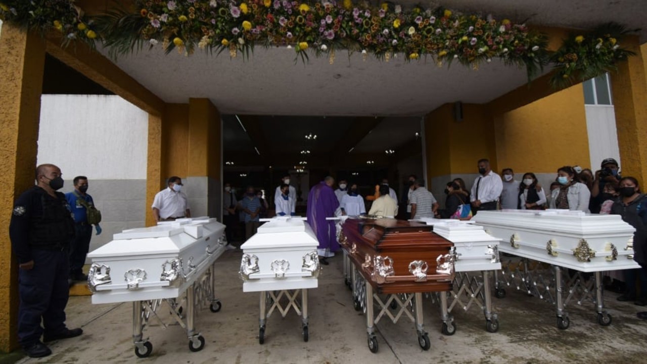 Los cuerpos de Kevin de 9 años, Alexa de 3, Axel Jair de 4, Cristofer de 5, la bebé María Fernanda, de 15 días de nacida y Dora Isabel de 27 años, madre de los pequeños, fueron velados en un domicilio de la familia en la colonia Revolución.