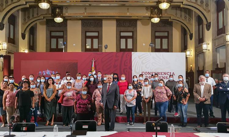 En el encuentro realizado en Palacio Nacional estuvo presente la secretaria del Trabajo, Luisa María Alcalde, y el subsecretario de Derechos Humanos, de la Secretaría de Gobernación, Alejandro Encinas.