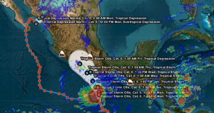 “Las lluvias, vientos y oleaje serán generadas por los remanentes de Norma, la tormenta tropical Otis, ubicada frente a las costas de Oaxaca, el frente frío número 7, que se extiende sobre el noroeste de la República Mexicana, una vaguada en niveles medios y altos de la atmósfera, la corriente en chorro subtropical y canales de baja presión extendidos sobre distintas regiones del país”, dice un comunicado del SMN.
