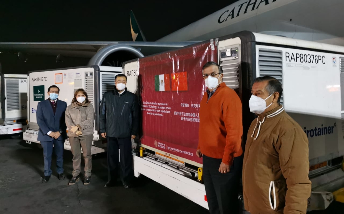 Para recibir el cargamento se encontraba el titular de Biológicos y Reactivos de México , (Birmex) Pedro Zenteno, del Instituto de Seguridad y Servicios Sociales de los Trabajadores del Estado (ISSSTE), Luis Antonio Ramírez Pineda; la subsecretaria de la SRE, Martha Delgado y el Embajador Zhu Qingqiao.