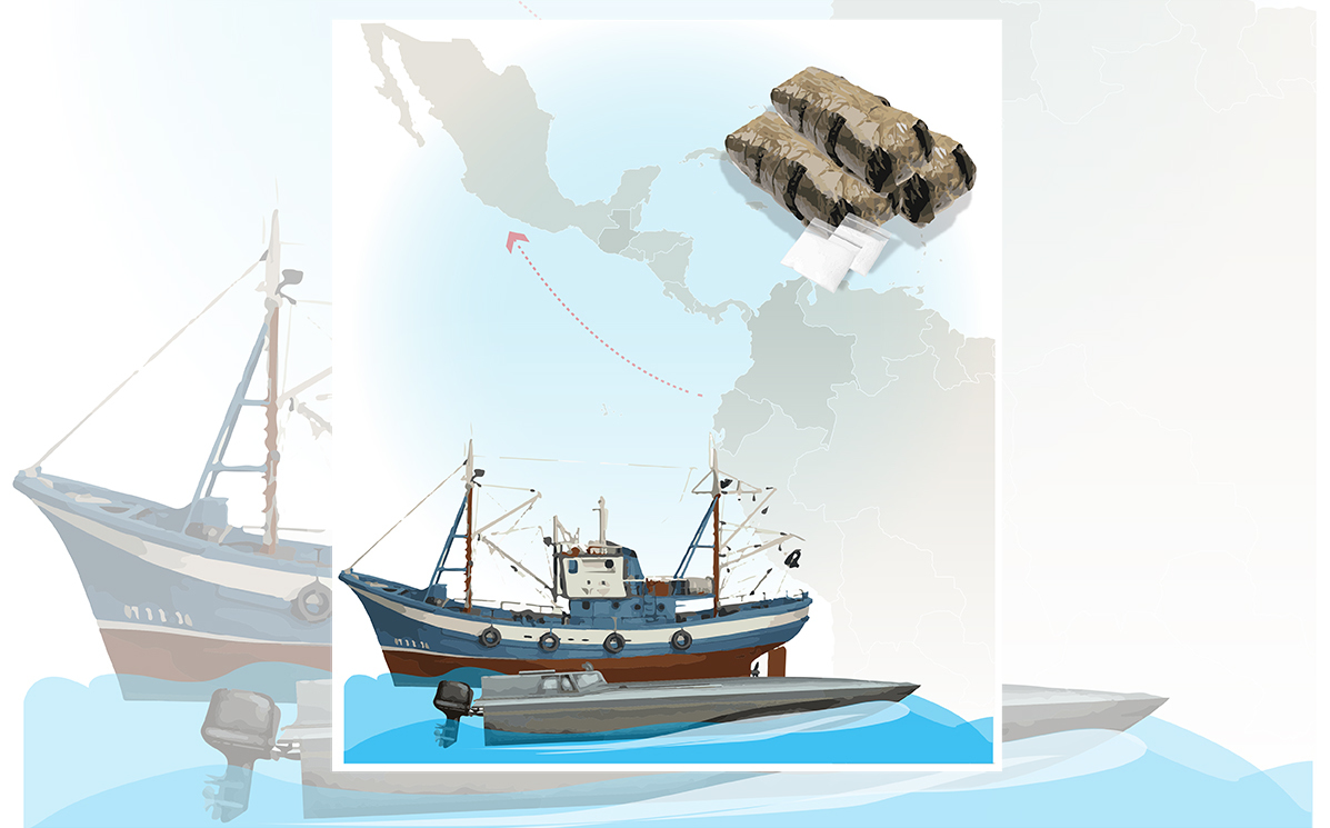 De acuerdo con información de la Marina, se presume que las lanchas tipo ‘go fast’ vendrían desde Ecuador, Guatemala y/o Colombia, en lo que han llamado la ruta pacífico-sureste; serían financiadas en territorio nacional por organizaciones delictivas como el Cártel de Sinaloa y el Cártel Jalisco Nueva Generación (CJNG); y desde Centro y Sudamérica por organizaciones como El Clan del Golfo, que ha logrado desplegar toda una red marítima.