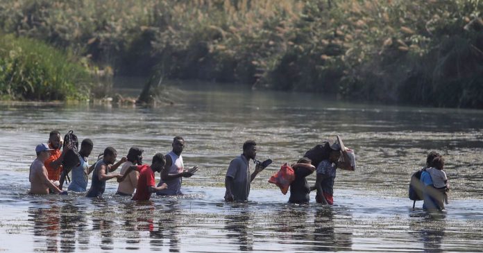 Cientos de haitianos cruzan el Río Bravo desde el lado de Texas hacia territorio mexicano para recoger los víveres que algunas organizaciones sociales les obsequian, algunos otros los compran. (Cuartoscuro)