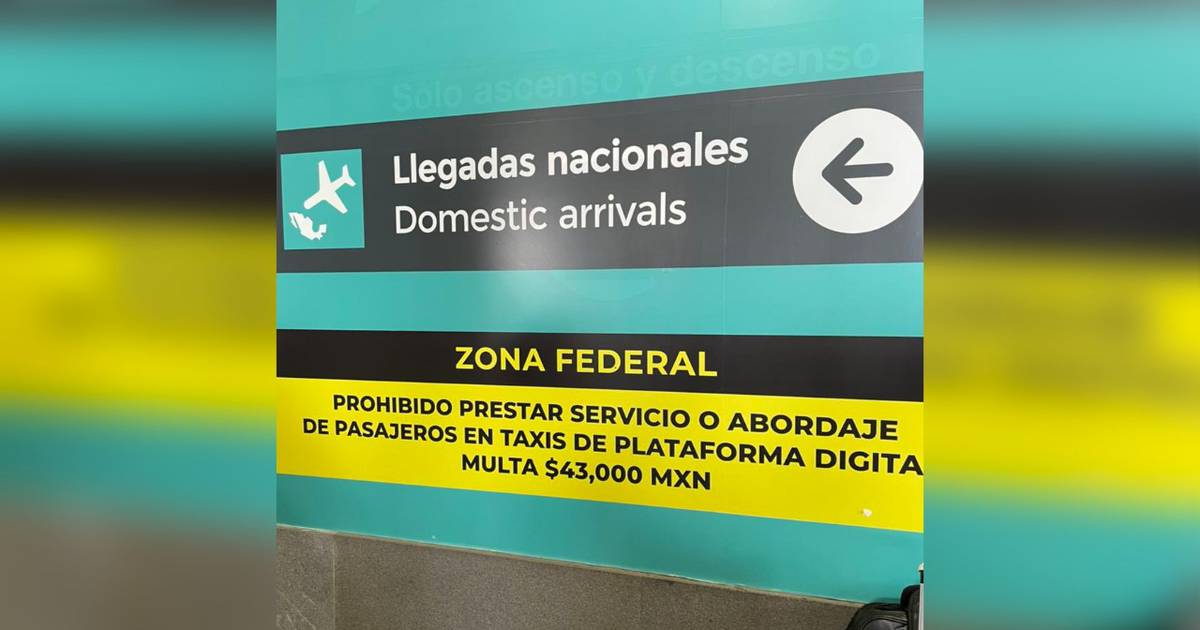 La periodista Lourdes Mendoza reportó que en el aeropuerto se pueden encontrar carteles que está prohibido prestar el servicio o abordaje de pasajeros en taxis de plataforma digital.