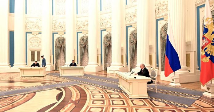 Antes de la firma de los tratados, Putin informó a sus homólogos, el francés Emmanuel Macron y al canciller alemán Olaf Scholz, sobre el reconocimiento de Donetsk y Lugansk, las dos regiones separatistas.