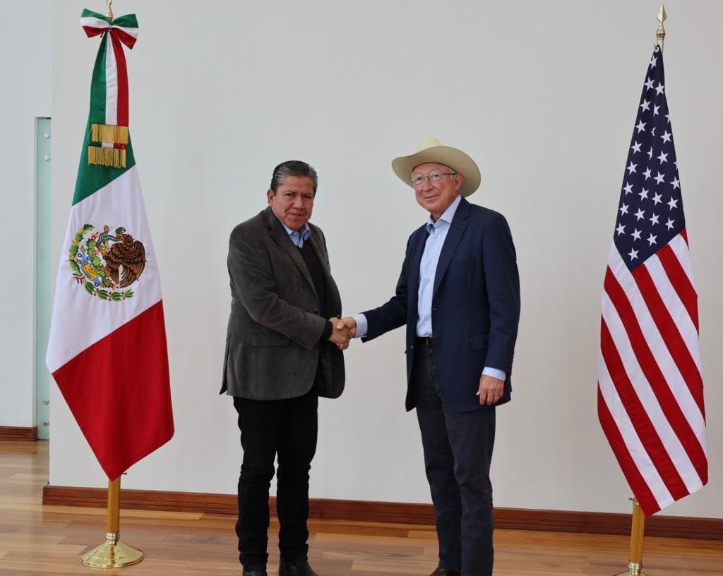 “Tenemos que trabajar todos los desafíos de manera juntos: lo de las armas, lo del fentanilo, lo del tráfico de personas, creando una seguridad compartida para Estados Unidos y México”, dijo el diplomático ante la mirada complaciente y halagada del gobernador Monreal.