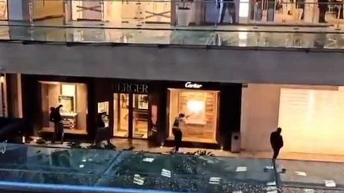 Alrededor de las 19.45 horas, un grupo de ladrones ha disipado a los clientes que quedaban cerca de la joyería Berger, especializada en accesorios de marca, dentro del centro comercial Antara, en Polanco, una de las colonias más exclusivas de Ciudad de México. Según las imágenes que han grabado los visitantes todavía estaban abiertas algunas de las tiendas de arriba de la joyería, con sus respectivos guardias de seguridad privada.