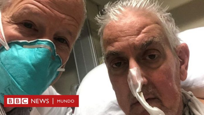 Fuente de la imagen, Facultad de Medicina de la Universidad de Maryland Pie de foto, El cirujano Bartley Griffith fotografiado junto al paciente David Bennett a inicios de enero.