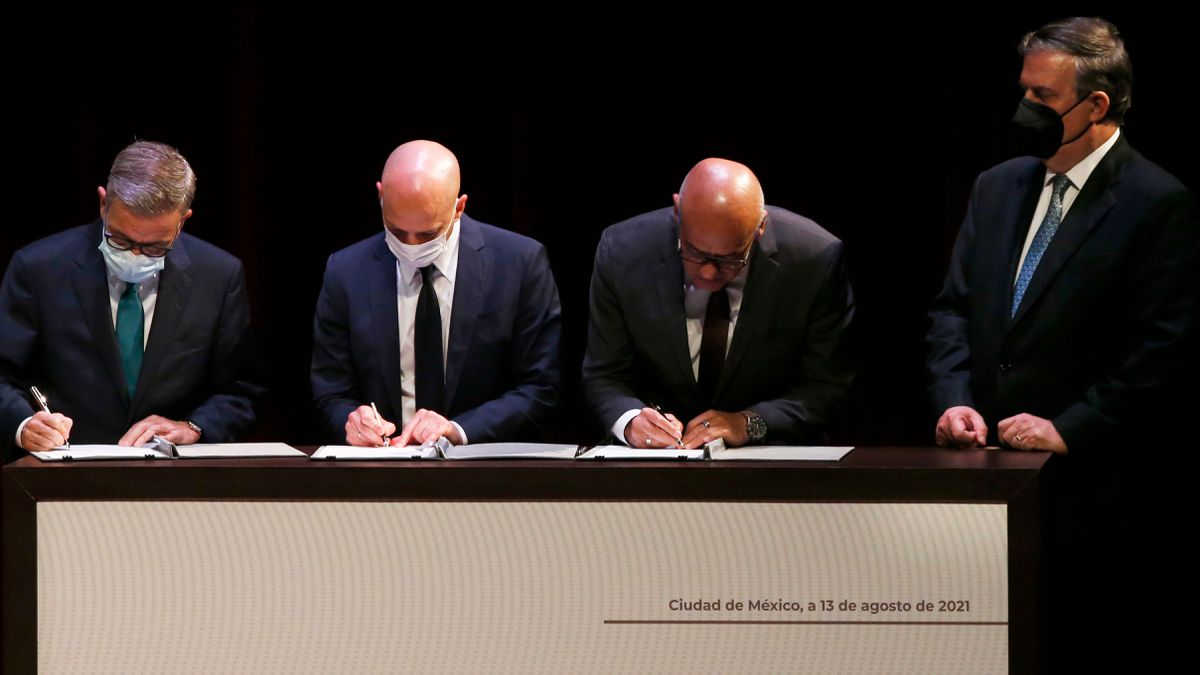 El canciller, Marcelo Ebrard, recordó que precisamente a principios de 2019, en medio de uno de los momentos más turbulentos que vivió Venezuela, le tocó estar en Montevideo para “sostener esta misma idea de que el diálogo es el camino”. “México”, incidió, “será como siempre un anfitrión respetuoso, solidario, siempre dispuesto a colaborar y a cooperar”. “No me resta más que desearles lo mejor y que a nombre de la Comunidad de Estados Latinoamericanos y Caribeños [cuya presidencia pro témpore recae en el mandatario mexicano, Andrés Manuel López Obrador]. Nos acabamos de reunir el 24 de julio, con motivo del aniversario de Simón Bolívar, desearles lo mejor. La CELAC y el mundo entero tiene los ojos y los mejores deseos puestos en ustedes”, agregó Ebrard, que también recibió las muestras de gratitud de las partes.