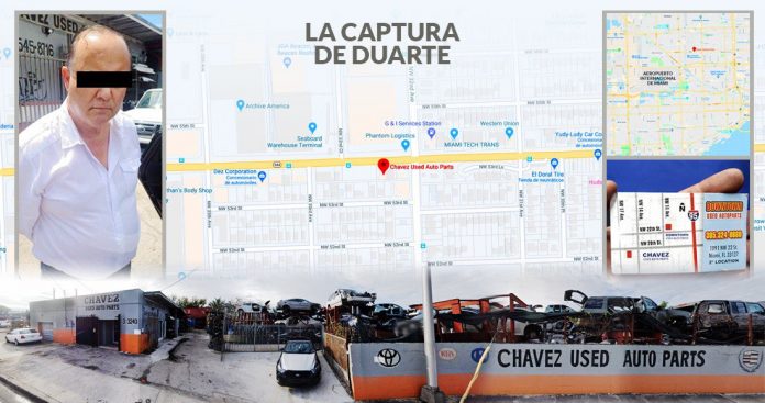 Pero César Duarte Jáquez, un individuo destacado como vendedor de autos usados en Ciudad Juárez, volvió, antes de perder su libertad, a sus orígenes. Al olor al aceite quemado y la grasa. A las llantas gastadas. A las piezas con desgaste y a la chatarra. Allí, en un local dedicado a la venta de partes usadas de vehículos, fue detenido por las autoridades de Estados Unidos.